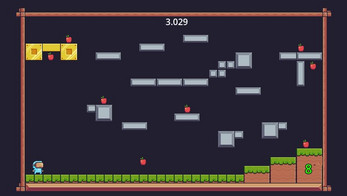 Each apple gives you a big jump boost for 10 seconds. The game is controlled with the left, right and spacebar arrows.